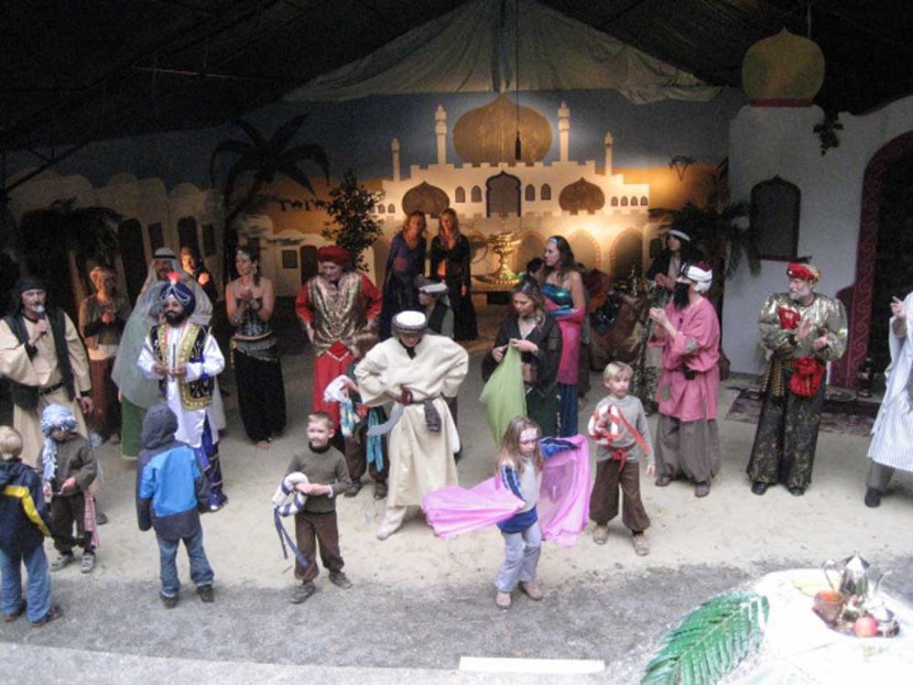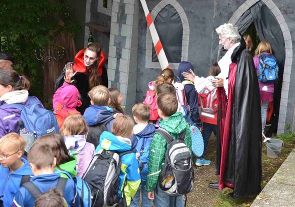 Bei der Sondervorstellung staunten die knapp 200 Kinder von Grundschulen aus Ehlen, Dörnberg, Breuna und Kassel nicht schlecht, als die unheimlichen Gestalten den kleinen Zuschauern ganz nahe kamen. Mutig und gespannt verfolgten die Schüler die Handlung, und man merkte schnell, das nasse Wetter konnte der guten Stimmung nichts anhaben. Es wurde viel gelacht und sogar mitgesungen. Auch das Ensemble hatte sichtlich Spaß an der Empathie der Kinder, so dass so mancher Darsteller spontan noch die eine oder andere Kleinigkeit mit ins Stück einbaute.