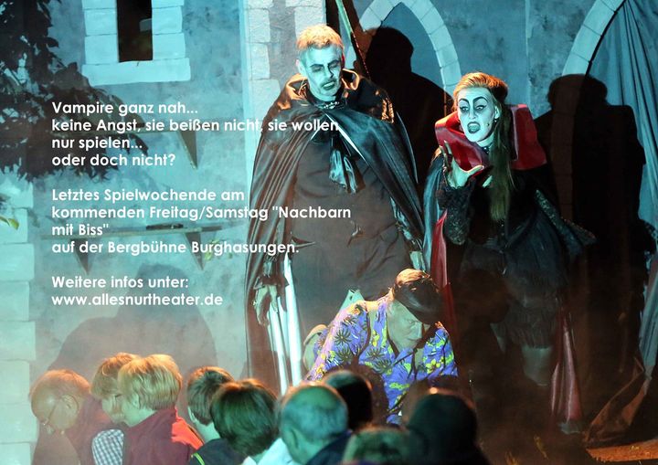 Erst waberte Nebel über die Stufen der Bergbühne Burghasungen und dann erschienen sie, die Vampire von „Nachbarn mit Biss“.