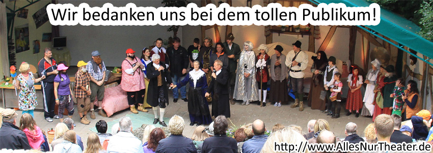 Bedanken möchten wir uns auch sehr herzlich bei unseren Sponsoren, ohne deren großzügige Unterstützung eine Umsetzung unseres Stückes in dieser schönen Form nicht möglich gewesen wäre. Nicht zuletzt möchten wir uns auch bei unseren tollen Zuschauern bedanken, die uns durch ihren Applaus und Zuspruch sehr motiviert und beflügelt haben! Dies ist uns Ansporn, um die bevorstehende freie Spielzeit zu nutzen, um sich Gedanken für das nächste Freilichtbühnen Stück zu machen – bleiben Sie uns treu und lassen Sie sich überraschen!