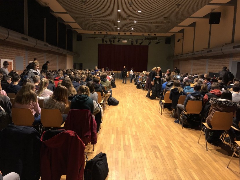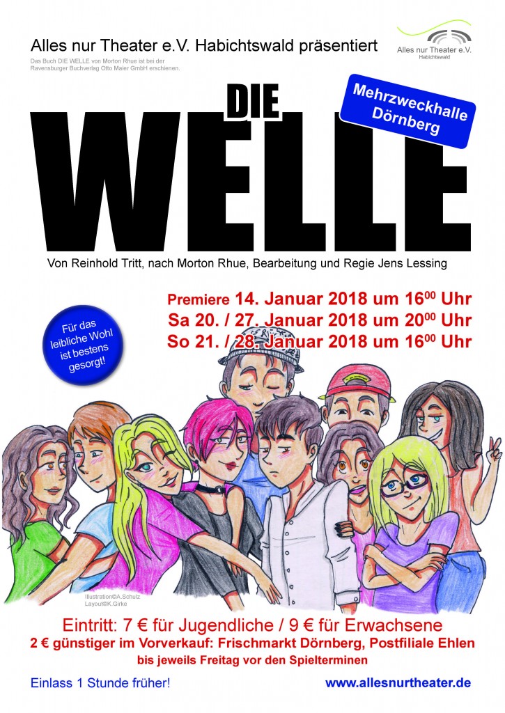 Vor der eigentlichen Premiere im Januar in Dörnberg fand am 21.12.2017 eine Aufführung des Jugendstückes „Die Welle“ in der Kulturhalle Wolfhagen vor ca. 300 Schülern statt. Die Akteure auf der Bühne zogen von Anfang an die Besucher in den Bann: Gefühltes Unbehagen, als der Lehrer im Geschichtsunterricht einen Film über die nationalsozialistischen Gräueltaten zeigt; Anteilnahme, als es zu Streitigkeiten unter den Schauspieler Schülern kommt und natürlich in der beeindruckenden und fesselnden Schluss-Szene.