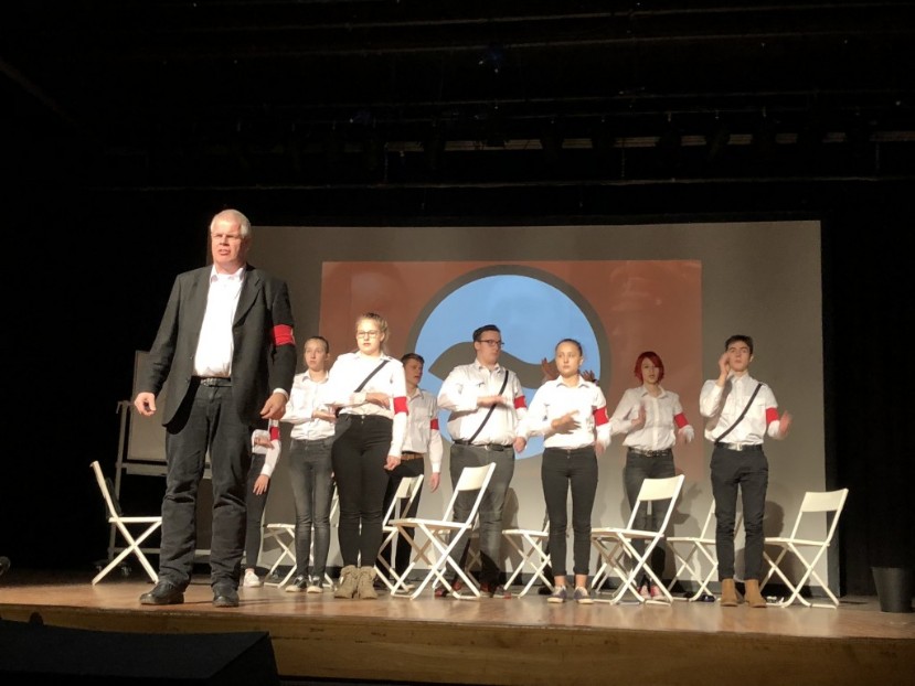 Das erste Jugendstück von AnT feierte am 14.01.18 eine umjubelte Premiere in der sehr gut besuchten Mehrzweckhalle Dörnberg. Die bestens aufgelegten Schaupieler überzeugten durch ihre große Spielfreude und zogen von Anfang an das Publikum in ihren Bann. Auf der einen Seite der Lehrer, der mehr und mehr Gefallen an seinem Experiment findet und es genießt, dass seine Schüler endlich seinem Unterricht mit Disziplin und Freude folgen. Auf der anderen Seite die Schüler mit fein ausgearbeiteten Charakteren, die sich nur zu gern der Welle anschließen. Wie wird sich diese Entwicklung fortsetzen?