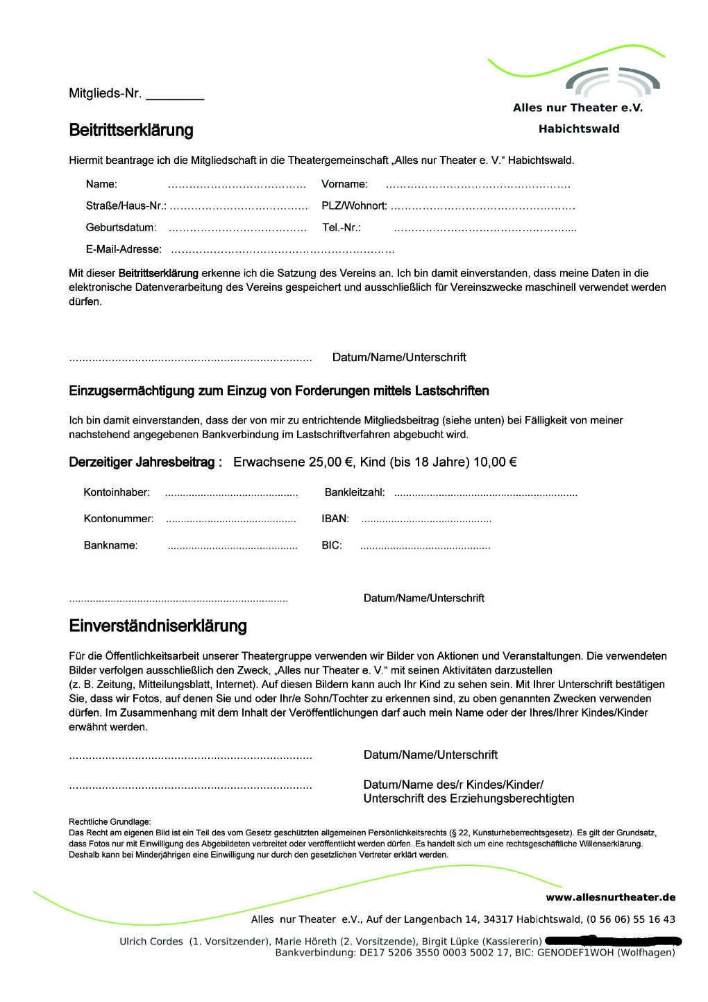 Mitgliedsantrag - alles nur Theater e.V. Habichtswald